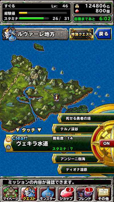このゲームの1番辛いところはレベル上げ。 普通のゲームであれば何度もダンジョンに言ってモンスターと戦えばレベル上げが出来るのですが、DQMSLではスタミナという概念があります。 ダンジョンに入るにはスタミナを消費します。もちろんスタミナがなくなったらダンジョンに入ることは出来なくなるので、そこでレベル上げはストップ。