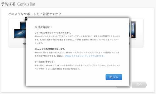 Apple製品おかしいと感じたら簡単予約!!「ジーニアスバー」の予約方法です。